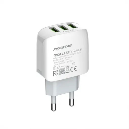 با استفاده از شارژر دیواری کینگ استار مدل KW163A که از سری محصولات جدید کمپانی «Kingstar» است و دارای قابلیت فست شارژ، میتوانید باتری انواع گوشیهای موبایل و دستگاههای هوشمند خود را با حداکثر توان خروجی 17 وات در سریعترین زمان ممکن شارژ کنید. این محصول دارای سه درگاه خروجی USB است که ورودی این محصول AC100-240V و خروجی آن نیز 5V/3.4A است.