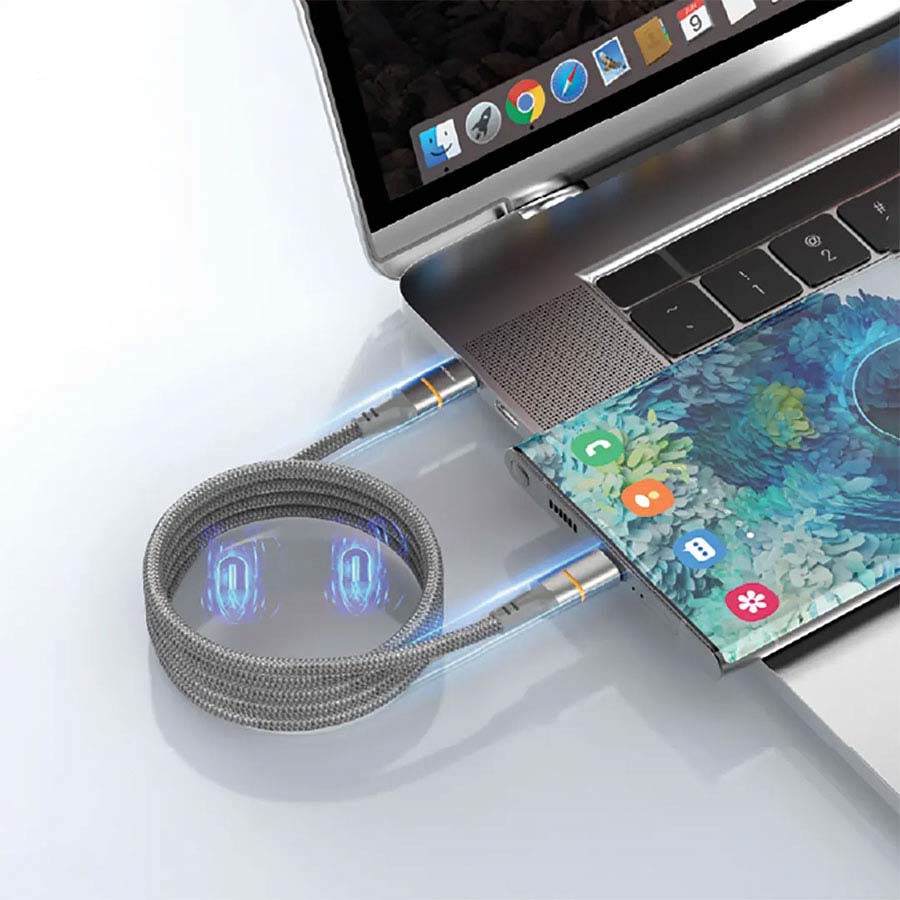 کابل نوری مغناطیسی LED پورتو USB-C به USB-C، یک کابل بافته شده با کیفیت بالا و طول 1.2 متر است که با دوام ساخته شده است. این کابل از شارژ سریع PD 60W و انتقال داده پشتیبانی می‌کند و منبع تغذیه بدون وقفه را برای دستگاه‌های سازگار با پورت‌های نوع C فراهم می‌کند. چراغ LED مغناطیسی آن را در تاریکی قابل مشاهده می‌کند که با ساختار بافته شده و بدون گره خوردن آن، دوام بیشتری در برابر ساییدگی و پارگی به آن می‌بخشد. این یک راه حل مناسب برای شارژ و همگام سازی سریع و کارآمد با سازگاری جهانی است، بنابراین دستگاه‌های شما هرگز تمام نمی‌شوند.